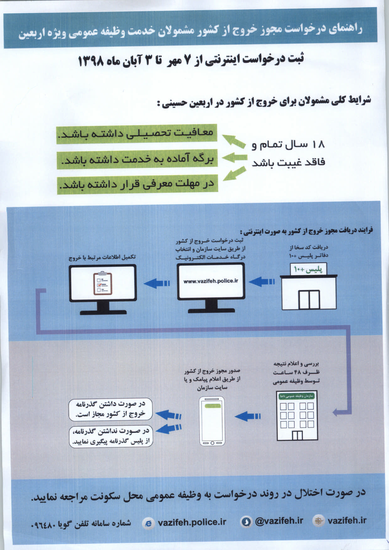 راهنمای درخواست مجوز خروج از کشور مشمولان خدمت نظام وظیفه عمومی ویژه اربعین